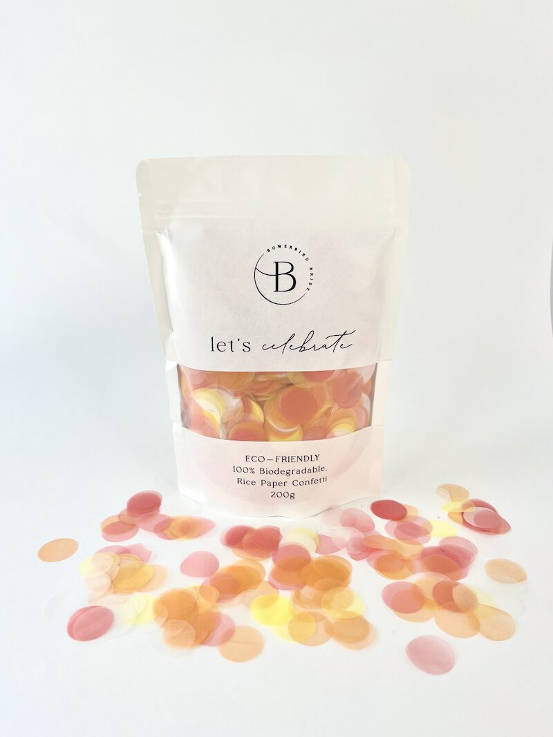 Create your perfect eco-friendly wedding moment with our Biodegradable Confetti, made from 100% glutenous rice paper, which is non-toxic and will break down quickly with the addition of water. This lightweight and floaty confetti is perfect for that kiss shot down the aisle with maximum ‘air time’.