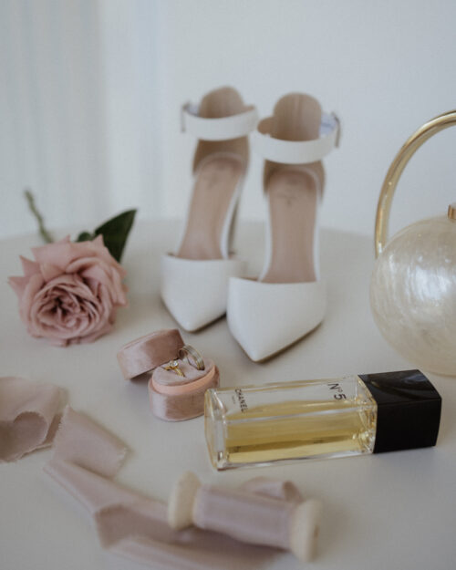 Velvet ring boxes are a lovely way to transport and present your wedding rings in a colour to compliment your wedding style. They are perfect to capture your personal elements in a photography flat lay.
