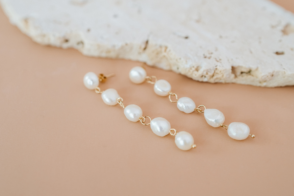 Ivy Earring$89.00 Luisa Luxe – Ivy Earring Dramatic, five pearl dangle for bridal luxe! • 18K gold plated stainless steel • Natural freshwater pearls • Nickel and lead free • Tarnish resistant • Safe for sensitive skin 1 in stock Ivy Earring quantity Add to cart You May Also Like Ella Bracelet0 out of 5 $69.95 Hartley Necklace0 out of 5 $82.90 Isobel Earring0 out of 5 $69.95 Aurora Earring0 out of 5 $79.00