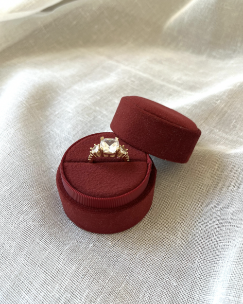 Velvet ring boxes are a lovely way to transport and present your wedding rings in a colour to compliment your wedding style. They are perfect to capture your personal elements in a photography flat lay.