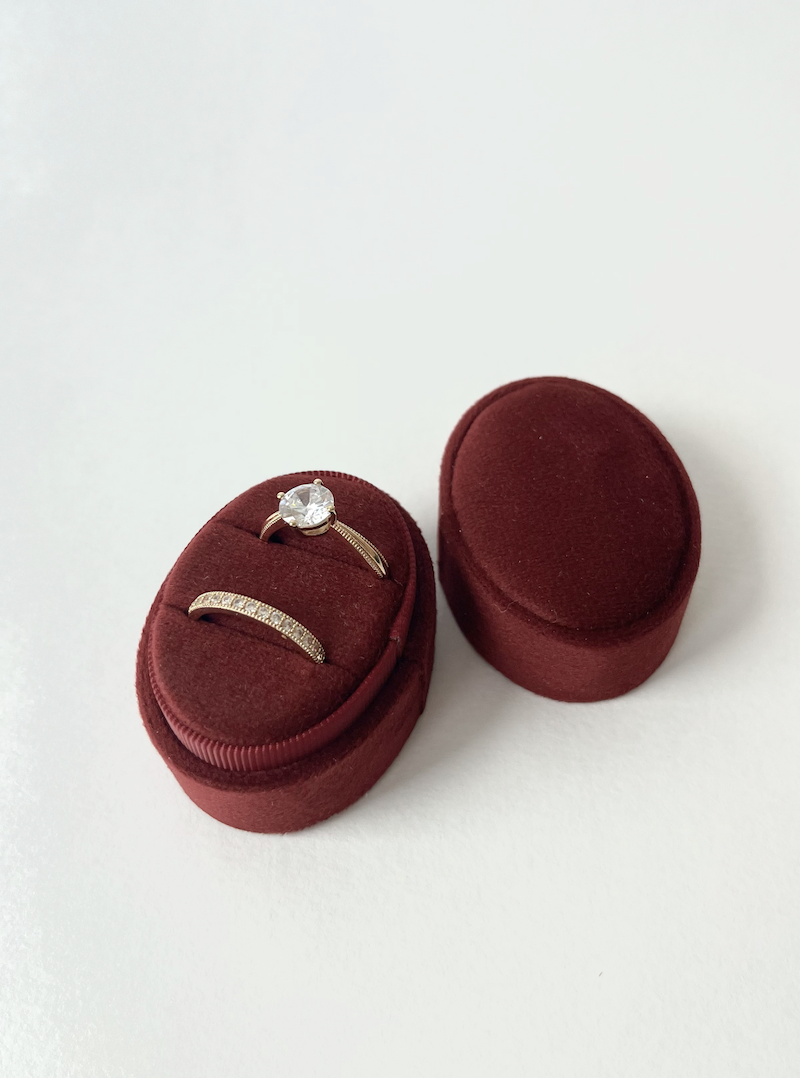 They are made from a soft velvet, with 2 padded slots, perfect for a keepsake after your wedding day.