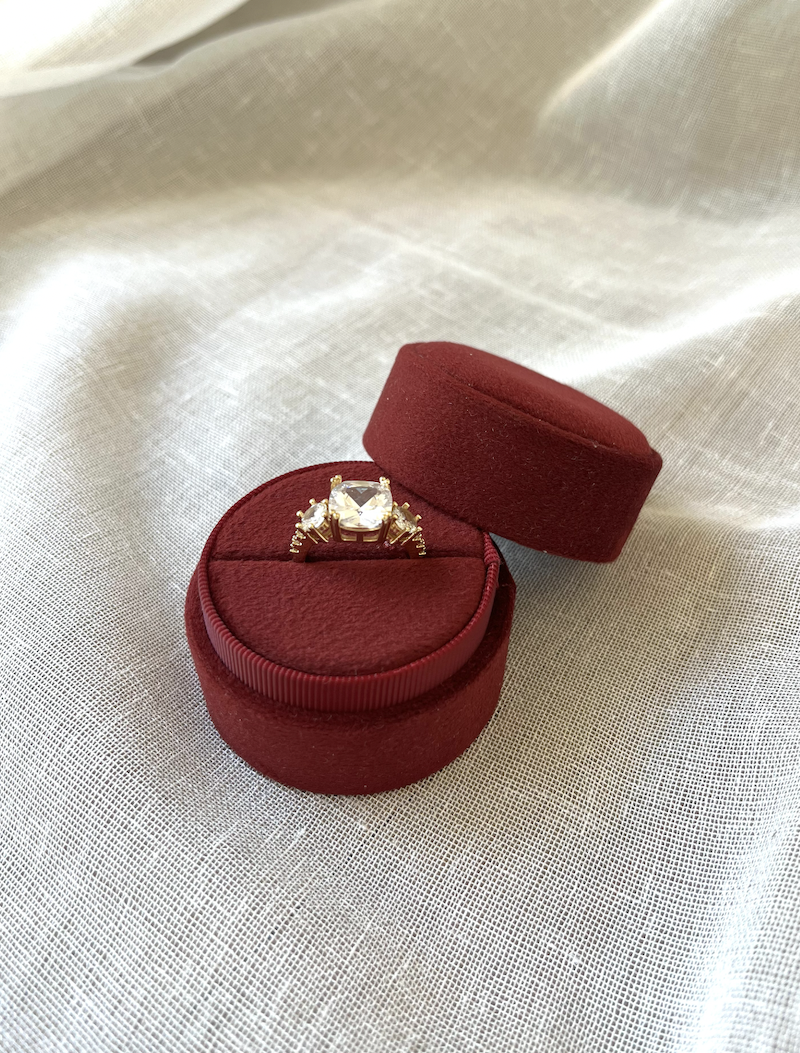 Velvet ring boxes are a lovely way to transport and present your wedding rings in a colour to compliment your wedding style.