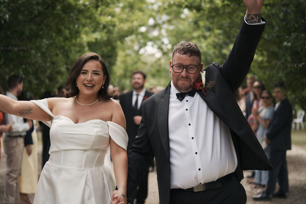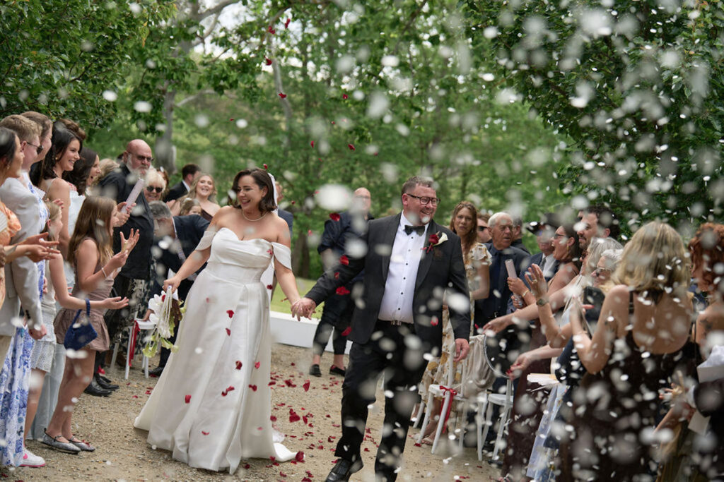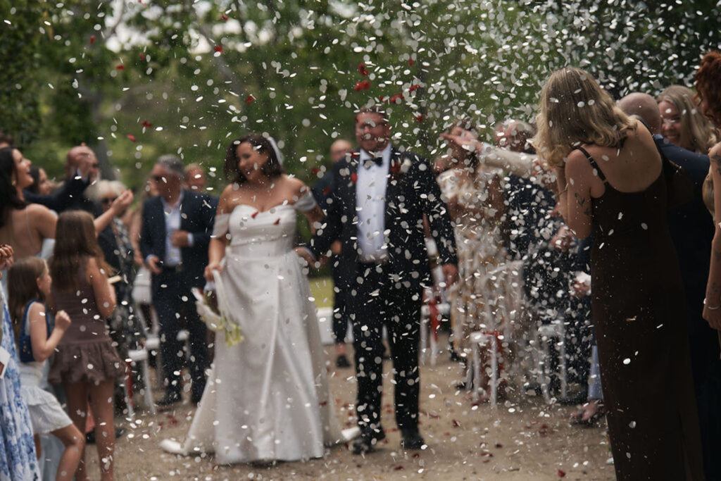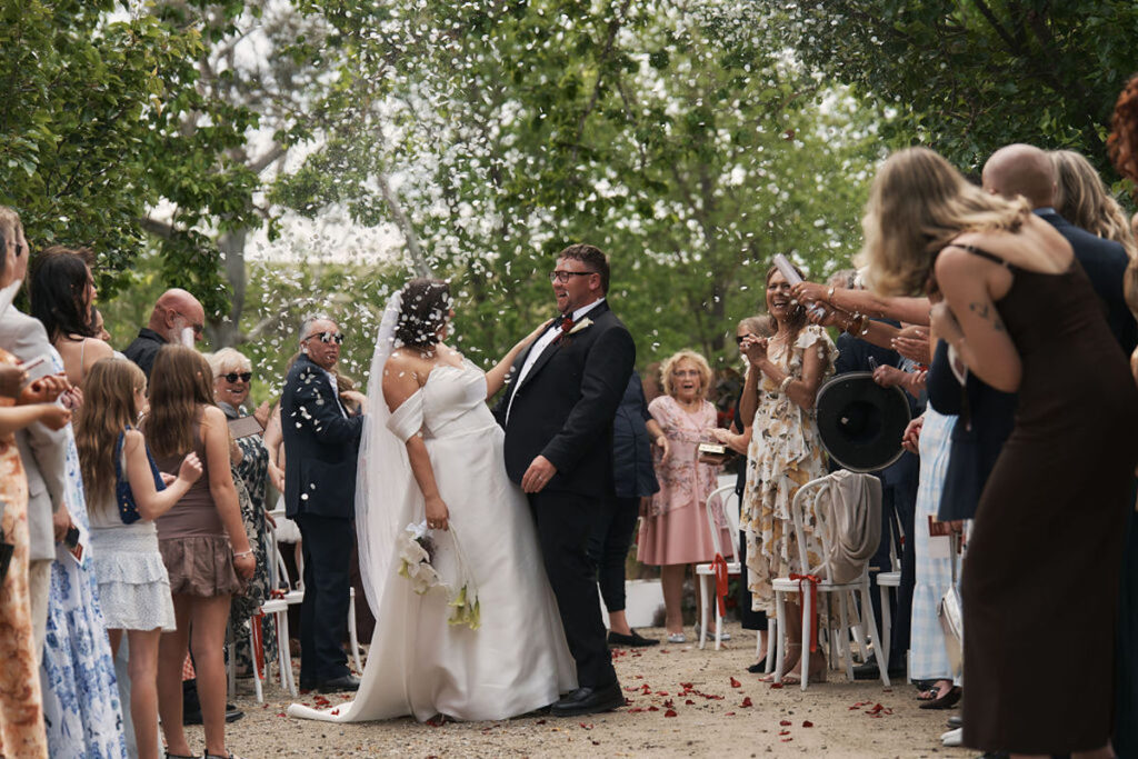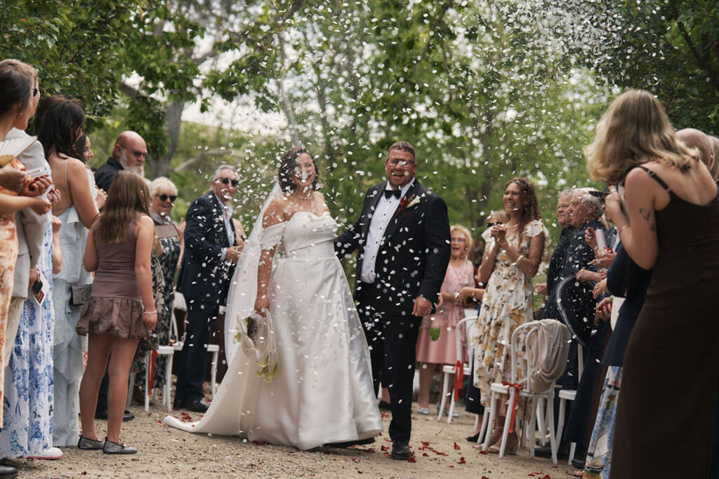 As Sarah and Ray walked back down the aisle as newlyweds, guests celebrated with our biodegradable confetti cannons in white circles, creating a soft, joyful moment that looked just as beautiful in photos as it felt in real life.